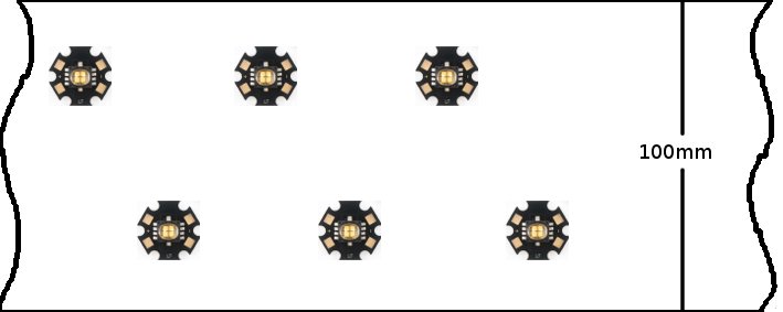 Unter den LEDs soll eine 100mm Breite Glasscheibe als Spritzwasserschutz befestigt werden. Nach oben ist die Konstruktion offen.