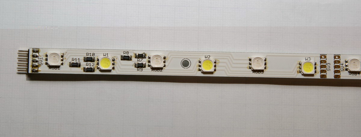 Ich verwende hier Samsung-SMD-LEDs, die eine sehr homogene Farbe bieten und bin damit eigentlich immer sehr zufrieden. Die Stripe-Platinen habe ich fertigen lassen.