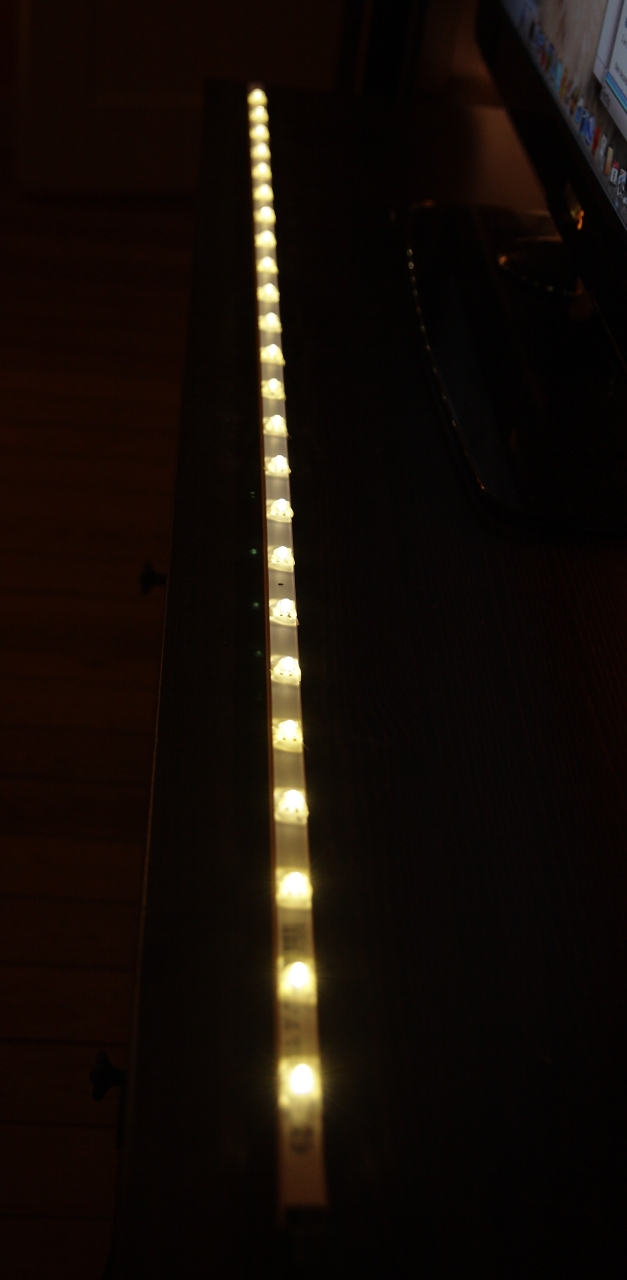 Ich würde sagen mit den 75 Ohm Widerständen ist die Leiste deutlich heller nicht ganz doppelt so hell. Hat sich auf jeden fall gelohnt. Hier noch die versprochenen Helligkeitsvergleichsbilder: