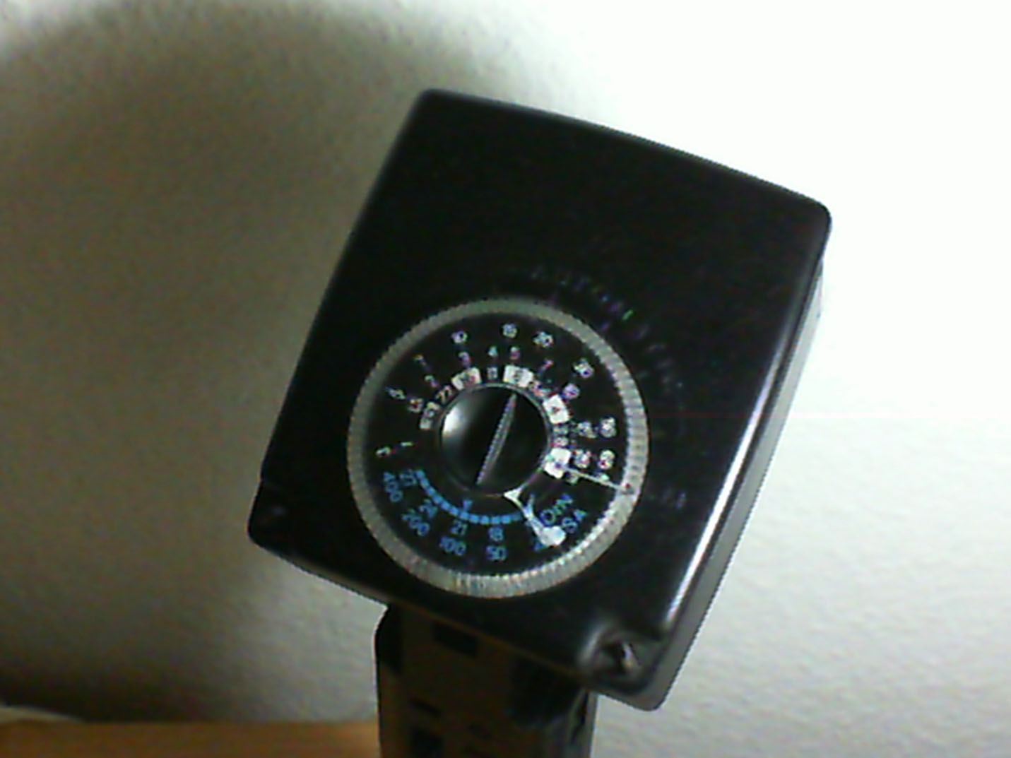 Typisch haben solche Stabblitzgeräte eine Einstellmöglichkeit (siehe oben auf dem Blitz), mit dem die Filmempfindlichkeit und Blendenvorwahl eingestellt werden können. Rückseitig (dort wo sich der manuelle Auslöser befindet), gibt es eine Kontrollanzeige, mit dem der Blitz über den eingebauten Blitzsensor an Ort und Stelle ausgewertet werden kann.