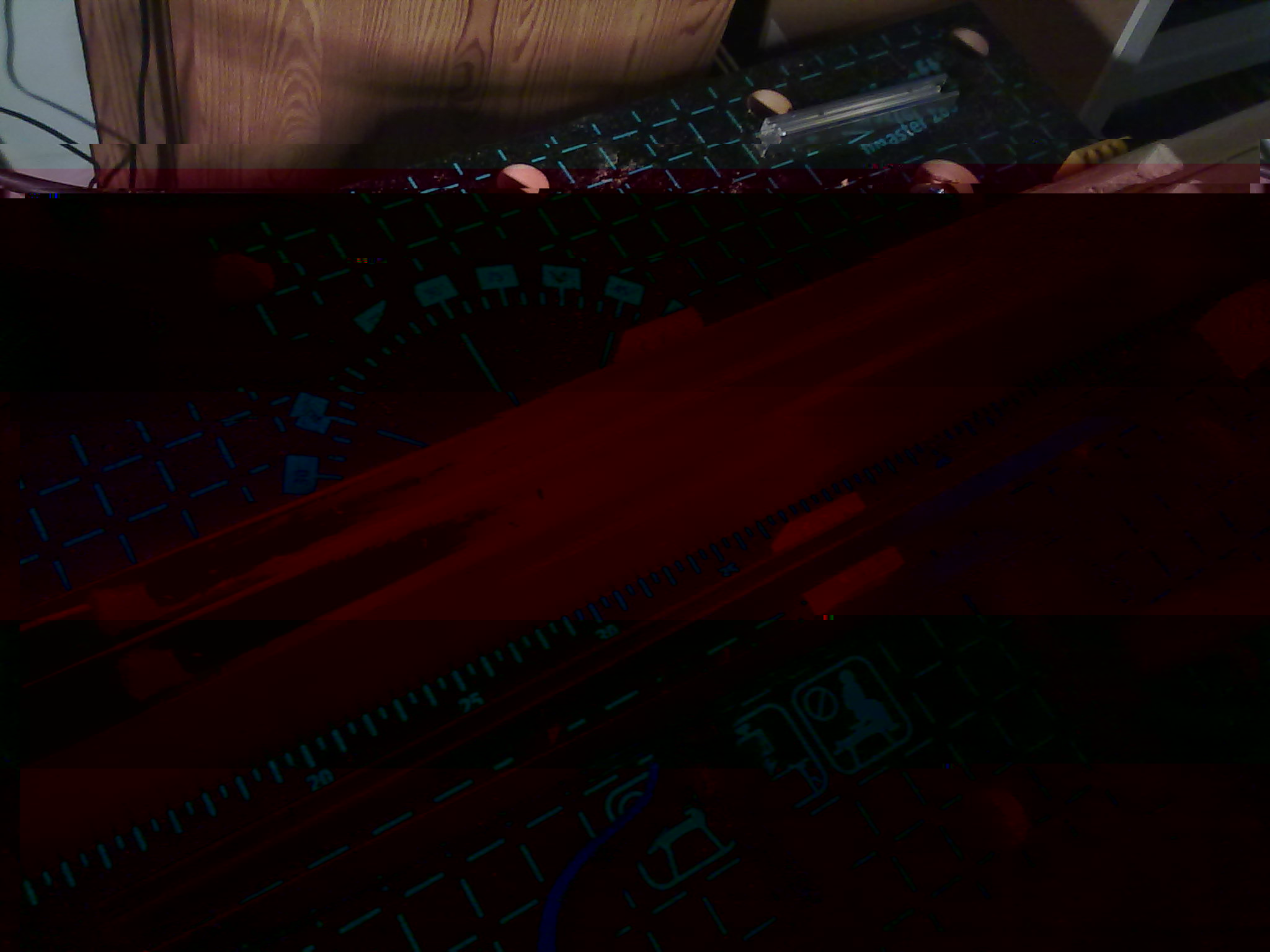 alles noch verkabelt (Loch nach hinten durchs Brett)