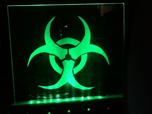 In unserer früheren Firma steht ein Schildle aus Plexiglas in dem das Firmenlogo eingraviert ist. Die Plexiglasscheibe ist von unten mit blauen LEDs beleuchtet und irgendwie leuchtet nur das Logo. Das sieht wirklich irre gut aus.