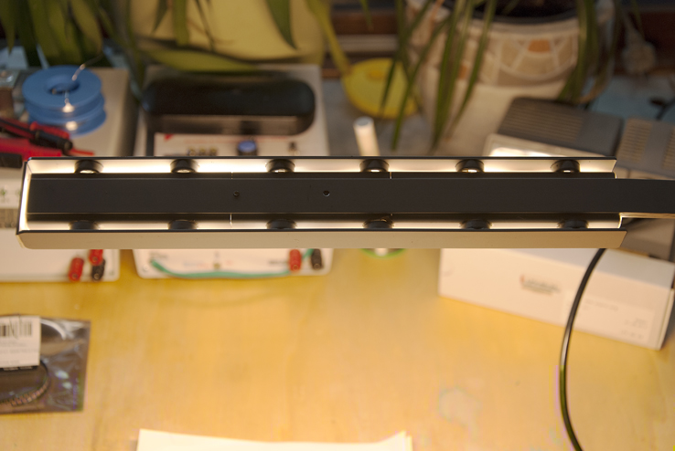 Alle LED inkl. COB in Reihe, zwei Reihenschaltungen parallel. Betriebsspannung bis 26V Strom max: 750 mA, Format Leuchtenkopf: 300 x 50 mm,
