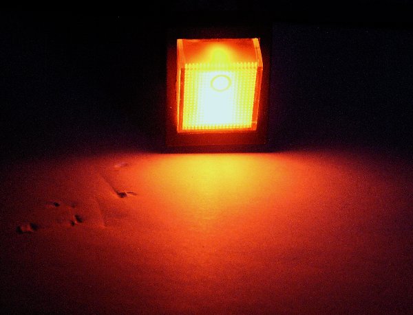 Dann noch ein Paar Bilder wenn der Schalter leuchtet(betrieben mit 9V Block): ^^ Im Hellen! ^^ Im Stockfinsteren!