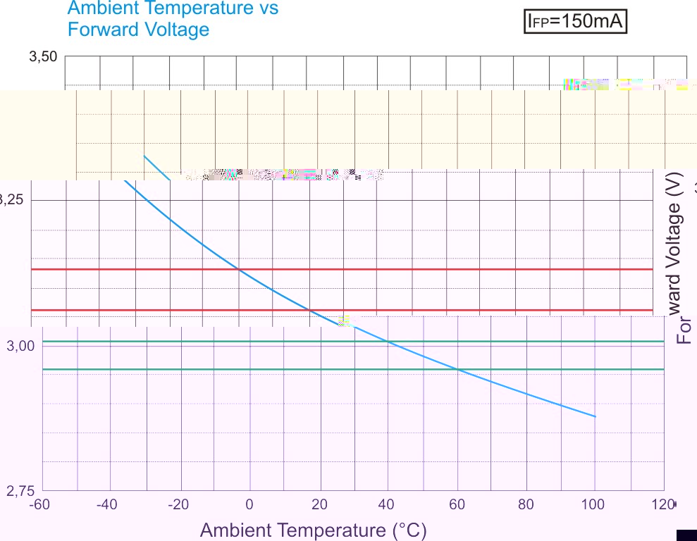 Das Diagramm aus dem Herstellerdatenblatt zeigt aber die Ambient Temperatur vs Forward Voltage, bei korrekter Montage also die Kühlkörpertemperatur über der Vorwärtsspannung.