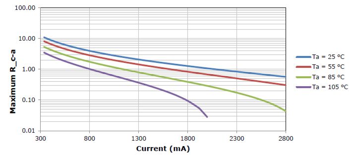 Um das Modul bei einer TJ von 85°C bei 2800 mA (=120W) zu betreiben, wäre folgendes erforderlich: