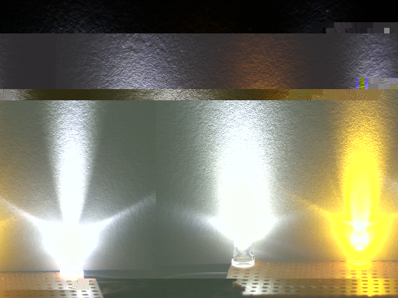 Obwohl alle LEDs einen Abstrahlwinkel von 20° besitzen sollte weicht der, der 16000mcd LED doch etwas ab wie man auch auf den Bildern sehen kann. Der Abstand der LEDs zur weißen Fläche ist bei allen nahezugleich (+/- 2mm schätzungsweise).