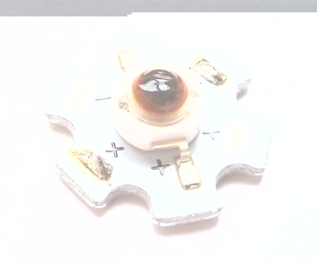 In den ersten 4 Stunden Laufzeit konnte ich keine Probleme feststellen. Der Kühlkörper wurde gerade mal lauwarm. Am nächsten Tag nach Dauerbetrieb durch die Nacht dann die böse Überraschung: die Linse ist teilweise geschmolzen und hat sich dunkel verfärbt. Die LED leuchtet aber noch. Es scheint so als wenn nur die Linse die Wärme nicht verträgt. Mich wundert es, dass in den ersten 4h nichts passiert ist.