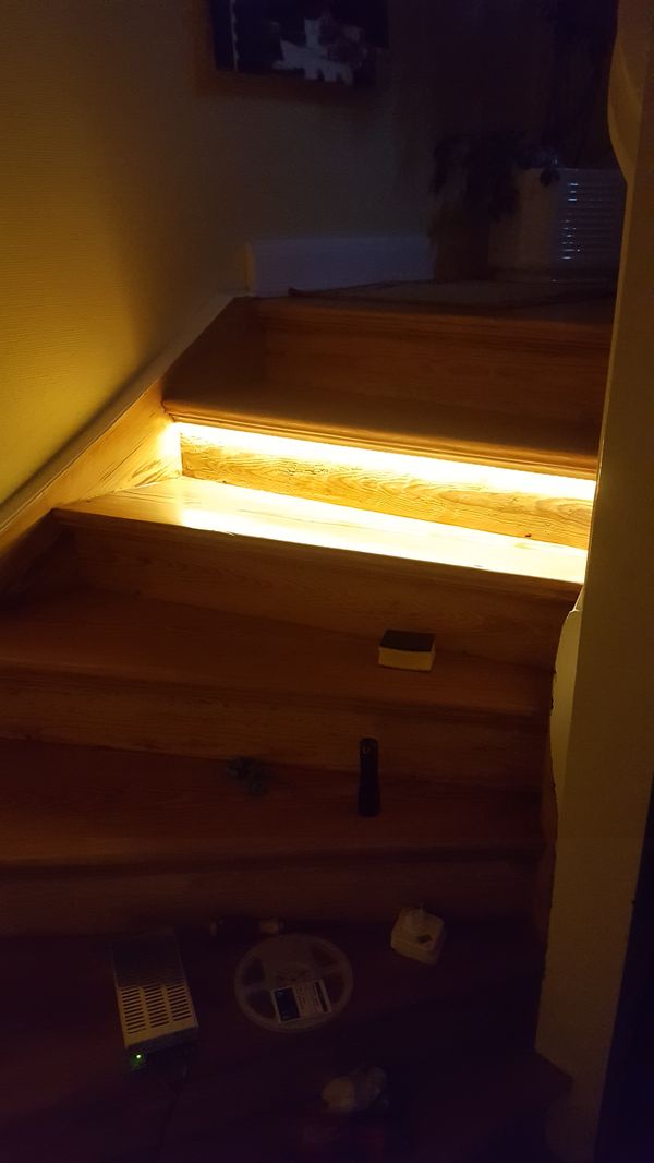 ich möchte gerne die Treppe unserers Hauses neu iluminieren :-) Da die Treppenstufen etwas überstehen habe ich ca. 8 mm Überstand woran ich prima LED Stripes befestigen könnte. Es sind ca. 18 Stufen mit 1 - 1,3 m breite.