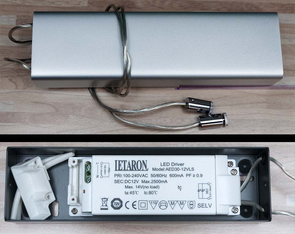 In diesem Set war das schon erwähnte Schaltnetzteil mit Gleichspannung am Ausgang enthalten. Funktionierte auch problemlos, habe aber später 2 von den 6 Leuchten entfernt, da es uns zu hell für einen Flur war.