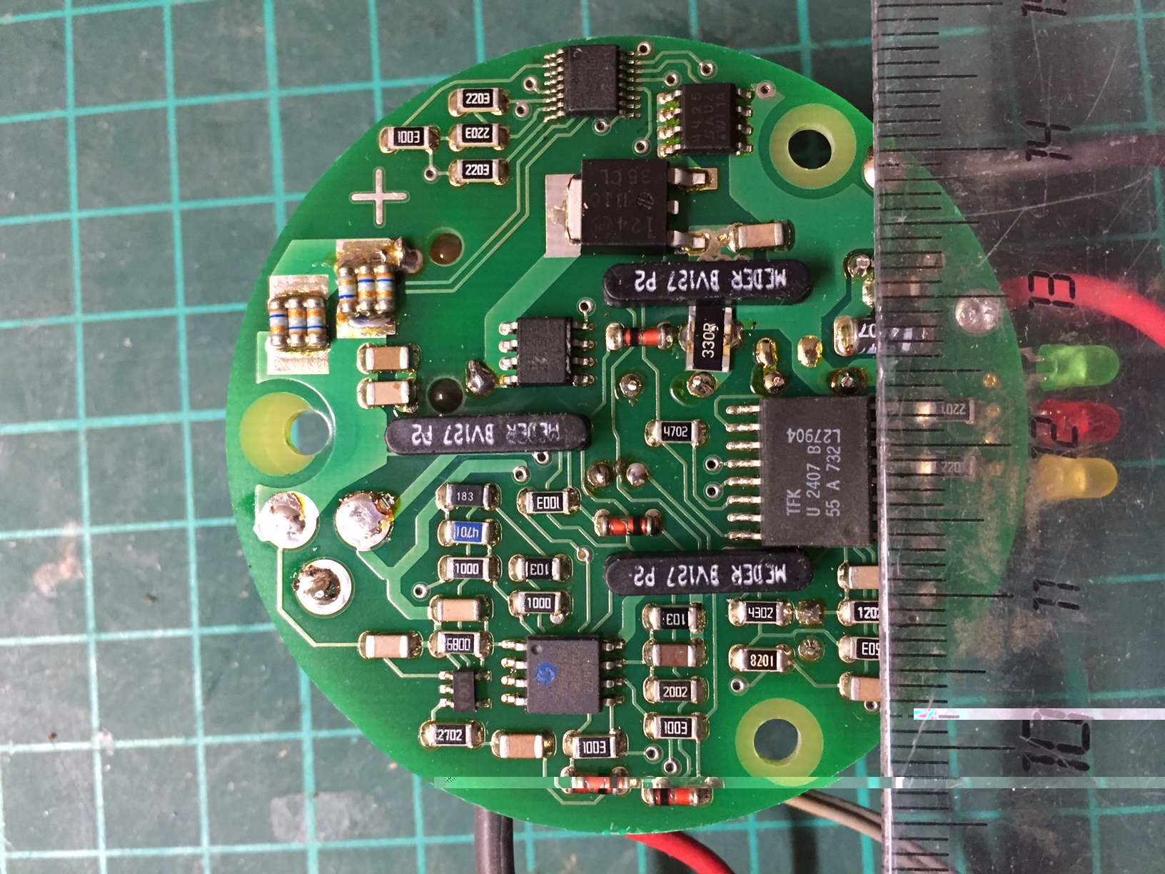 Im Anhang zur Platine ein paar Bilder mit angelegtem Lineal. ICh hoffe dass man darauf genug erkennen kann.