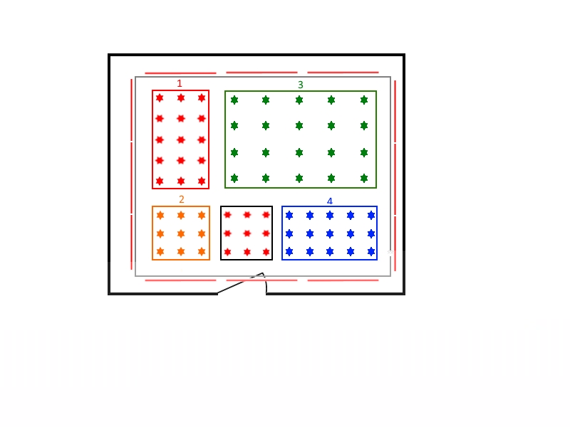 so ganz sicher bin ich mir nicht, was das Bild mit den farbigen Sternen bedeuten soll. Wenn hier jeder Stern eine LED-Lampe sein und die verschiedenen Farben verschiedene Zonen, so ist das das ganze vermutlich nicht so sinnvoll. Wenn z. B. das grüne Feld einschaltest, wird das letztlich ausreichen, um den ganzen Raum erleuchten. Natürlich ist es in der "grünen Ecke" heller als in der "gelben Ecke", aber ich denke, der Unterschied wird letztlich so gering sein, dass das nix bringt.