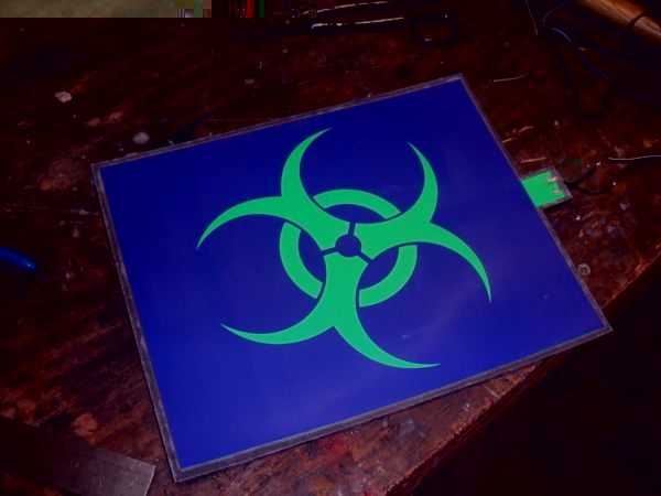 Das Bio Hazzard Zeichen hab ich mir Plotten lassen und dann auf eine Leuchtfolie aufgebracht...