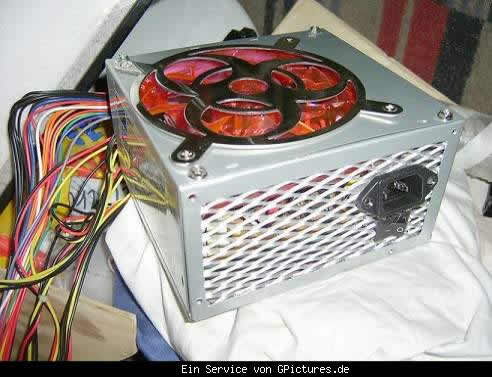 Nun ging es an´s Netzteil,hier wurde erdt einmal die "Rüchwand abgeflexst und gegen eine neue aus Streckmetall ausgetauscht,ein Neuer rot beleuchteter lüfter mußte natürlich auch hinein.