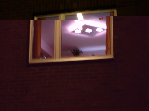 Noch ein Bild von der Strasse aus, der helle senkrechte Strich ist die Strassenlaterne gegenüber