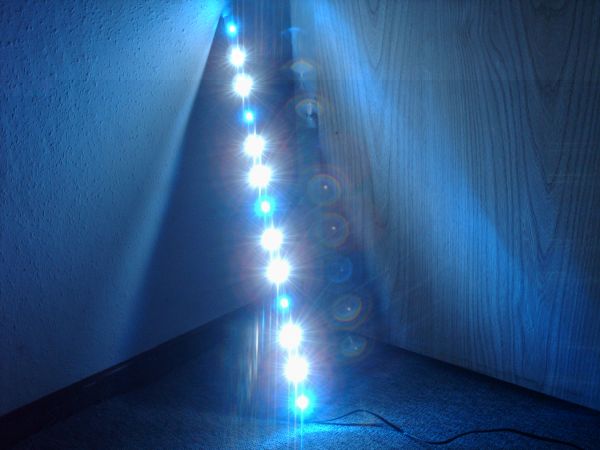 erstmal die leiste alleine im licht(13 led´s - sollten nut 12 werden aber hab mich verrechnet - so ging die aufteilung aber besser auf ;))