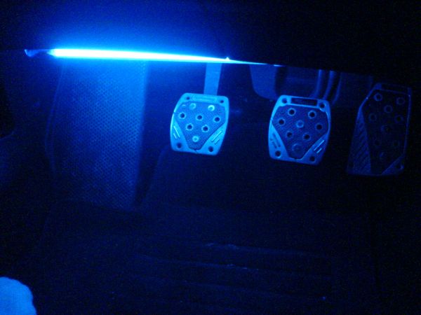 50 x 3mm blaue leds im linken fußraum und im kabelkanal.