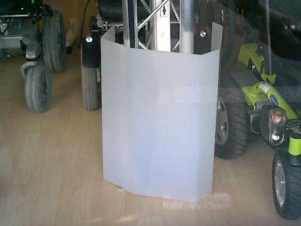 Guck auch mal bei Modulor. Die haben einen Webshop für alles mögliche Bastelmaterial für Architekten und Designer inkl. Zuschnittservice etc. Was die Folie auf dem Bild betrifft, so würde ich auf Polypropylen-Folie/Platte matt weiss, transluzent tippen. Bei Modulor findest du auf jeden Fall solche Platten, aber auch welche aus milchigem und/oder satiniertem Acrylglas speziell für Lichtdesign.