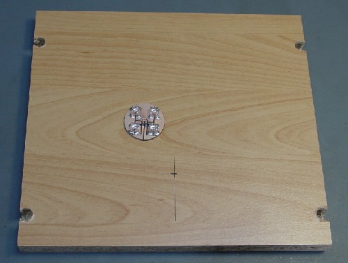 Die Regalplatte mit dem einzubauenden Modul und dem angezeichneten Loch.