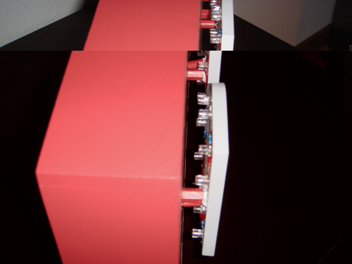 8 - 10 mm Abstand zwischen Buchstabe und Hintergrund sind arg wenig, aber angesichts der Gesamthöhe des Buchstabens von 10 cm noch vertretbar. Die mir am sinnvollsten erscheinende Lösung wäre, seitlich abstrahlende LEDs (gibts hier leider nicht) durch den Hintergrund zu stecken.