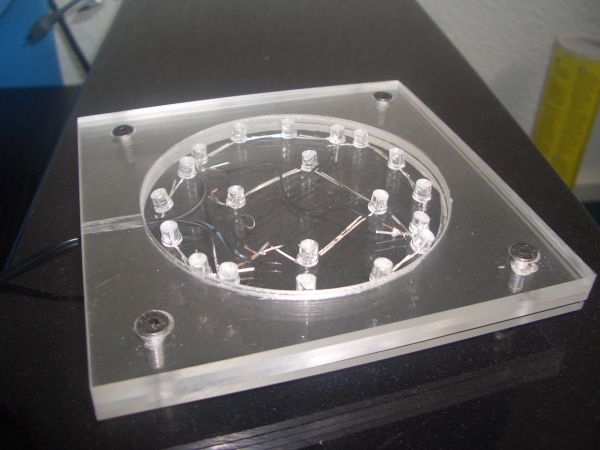 der äußere Kreis ist mit blauen der innere Kreis mit Weißen Leds bestückt so ->