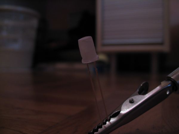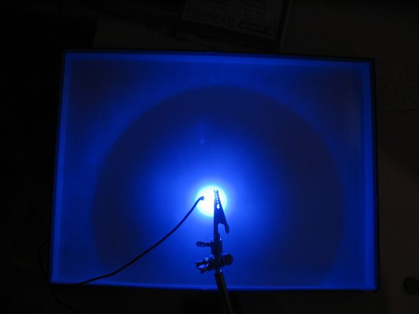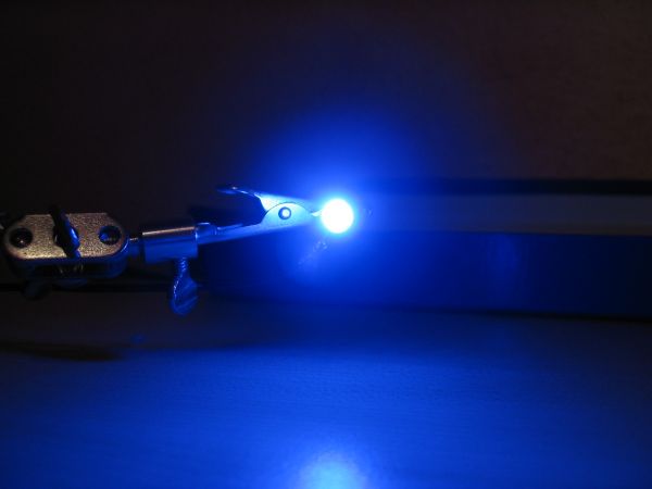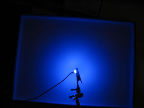 Danach sollte die LED ein fast absolut gleichmäßig und in alle richtung "schimmerndes" Licht abgeben.