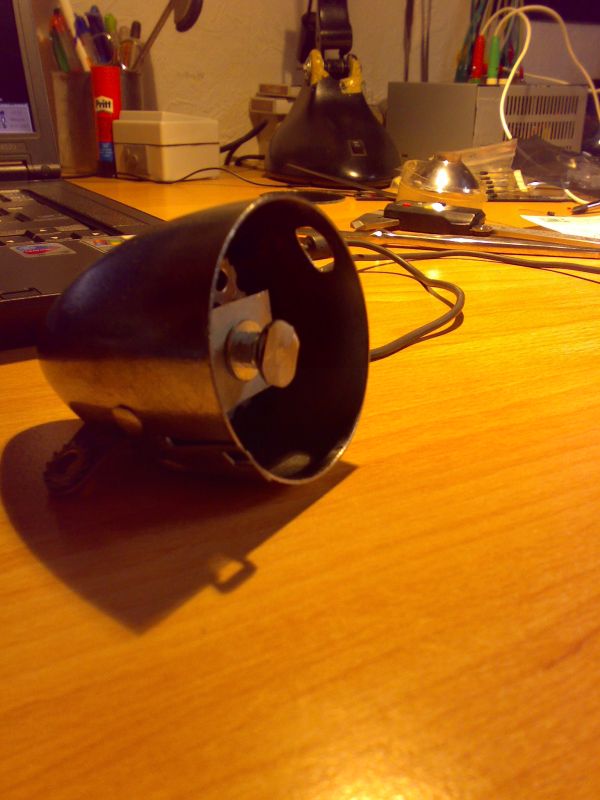 Ich habe vor eine P4 in einer Fahrradlampe zu betreiben. Dafür habe ich eine Schraube in das Federblech geschraubt, welches sonst die Birne kontaktiert. Hier mal ein Bild: