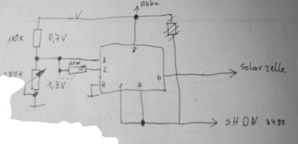 Der soll doch den SHDN nach Masse ziehen, wenn von der Solarzelle Saft kommt.