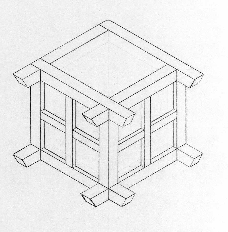 Die Maße sind (ohne die überstände) 250*250*250 mm (Hölzer 30*30*länge und 10*10*länge)