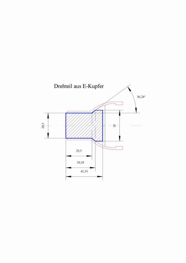 Sind alle Stege entfernt, folgt die Probe ob das Drehteil aus E-Kupfer (schwer !!) oder Alu (leichter aber etwas geringeren Wärmeleitwert) „saugend“ hineingeht. Dies ist später für die Wärmeleitung der LED’s zum Kühlkörper zuständig.