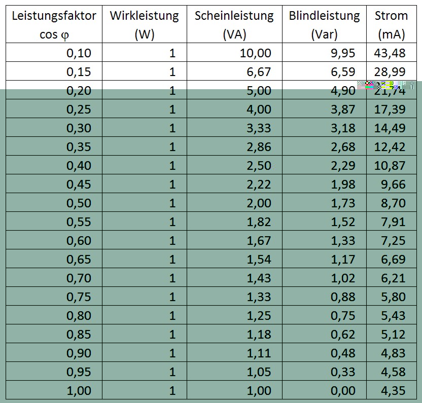 Aufgrund meiner völlig falschen Interpretation der Daten bezüglich Blindleistung (nochmals Dank an Loong) habe ich Excel beauftragt, die Berechnungen zukünftig für mich zu übernehmen.
