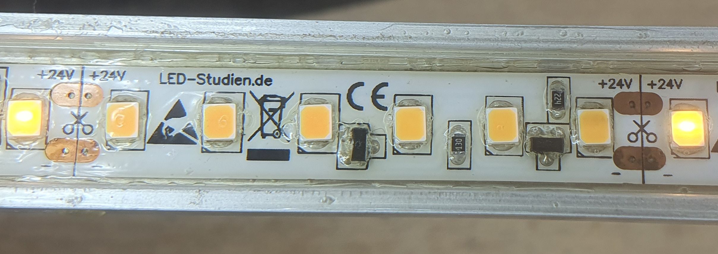 Ich hoffe mal, dass nach dem dritten Auftrag da jetzt auch alle Ränder dicht sind und dann würde ich das in den Dauertest geben. Eine generell Lösung kann das aber so leider auch nicht sein, denn über Kopf mit LEDs nach unten (nicht selten bei mir) ist das undenkbar zu machen so. Tropft heftig und wenn ich das dann immer 3 mal so dick auftragen muss - das geht leider nicht. Vermutlich werde ich doch noch mal den PLASTIK 70 testen. War bisher eigentlich das beste Ergebnis. Der Teststreifen leuchtet auch noch. Ich bräuchte für den nur eine dünnere Düse für das Spray damit ich gezielt ins Profil sprühen kann ...