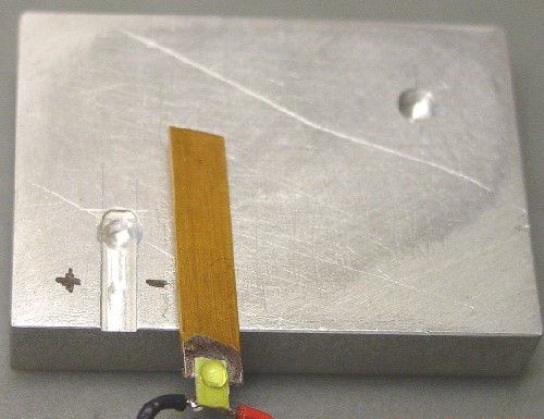 Die Vergleichs LED habe ich in nachfolgend gezeigter Vorrichtung mit einem Kupferstreifen