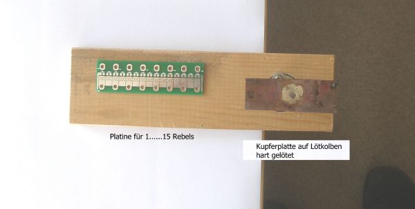 Versuche zeigen das eine Rebel eingelötet mit einem Lötkolben