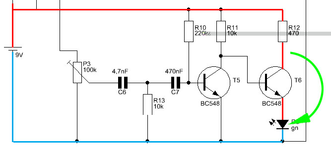 überbrückt werden, da wo der Emitter des Transistors sitzt muss Du dann