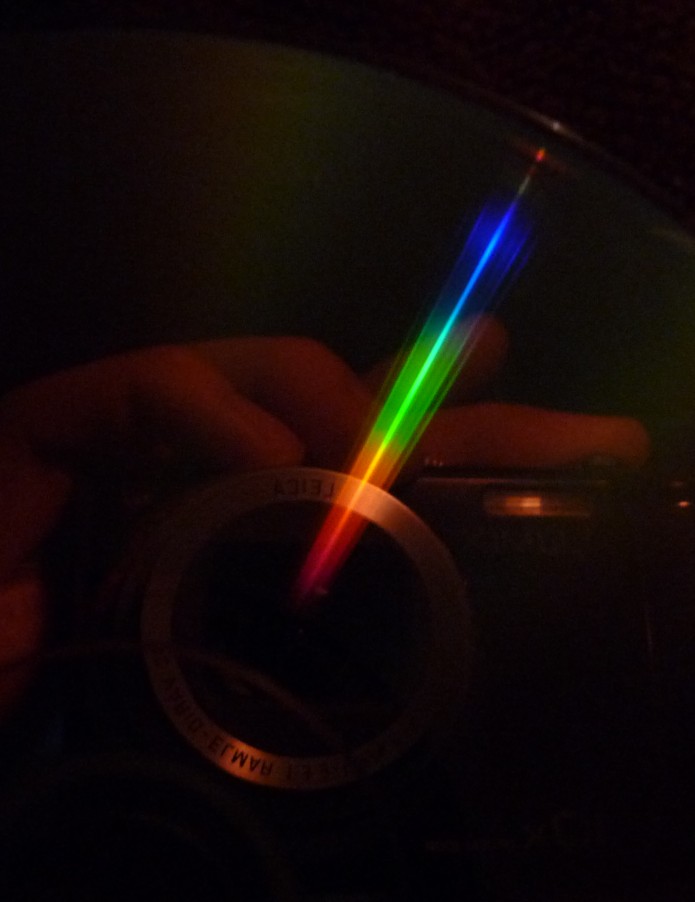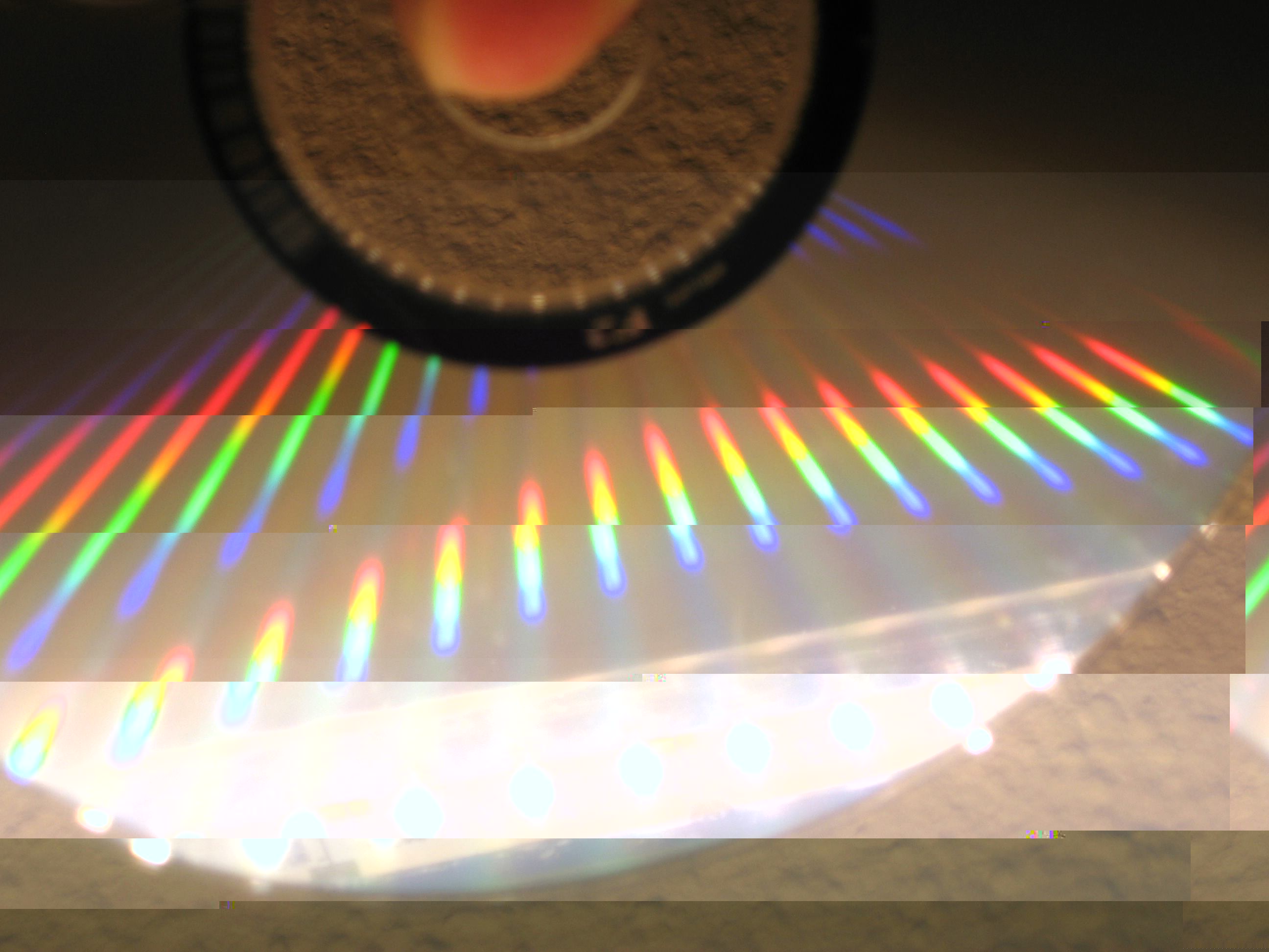 @A.E.: Du hast doch auch diese Leiste, nimm einfach eine CD und halte sie so ins Licht der Leiste, dass Du die Regenbogenfarben siehst.