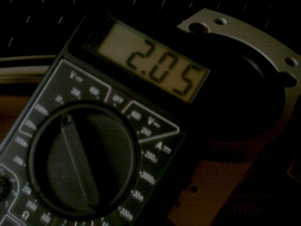 So nach kurzen suchen fand ich auch die + und - Kontakte auf der Platiene, und so habe ich auch erst einmal den Strom gemessen die nacher die schöne neue Led bekommt. Wie man auf den Bild sehen kann, kommen schöne 3.01V, und so ging es dann auch weiter.