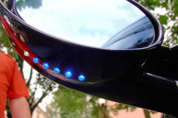 Der Tacho war erst komplett grün: Wie auch alle Schalter: Umfeldbeleuchtung mit 1 Watt Luxeon in Royal-Blue: Innenraumleuchte mit 8xSuperflux in der Mitte und je 4xSuperflux Außen: Leseleuchen hinten mit 4xSuperflux + 1xSuperflux als Nachtbeleuchtung: Neue Spiegel mit je 6x0,5Watt 5mm LEDs: Gruss René