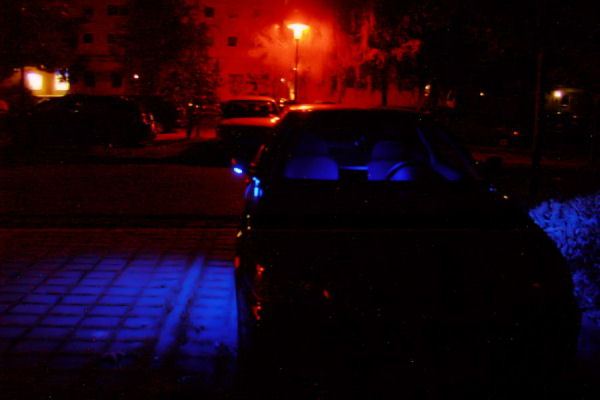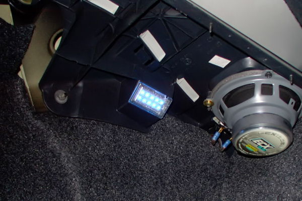 Fußraumbeleuchtung mit 20 x Superflux: Handschuhfach mit 6 x Superflux: Endstufenbeleuchtung mit einer pulsierenden 1Watt Luxeon: Kofferraumbeleuchtung mit 10 x Superflux: Türgriffmulde mit je einer 5mm LED: Weitere Umbauten vielleicht nächste Woche.