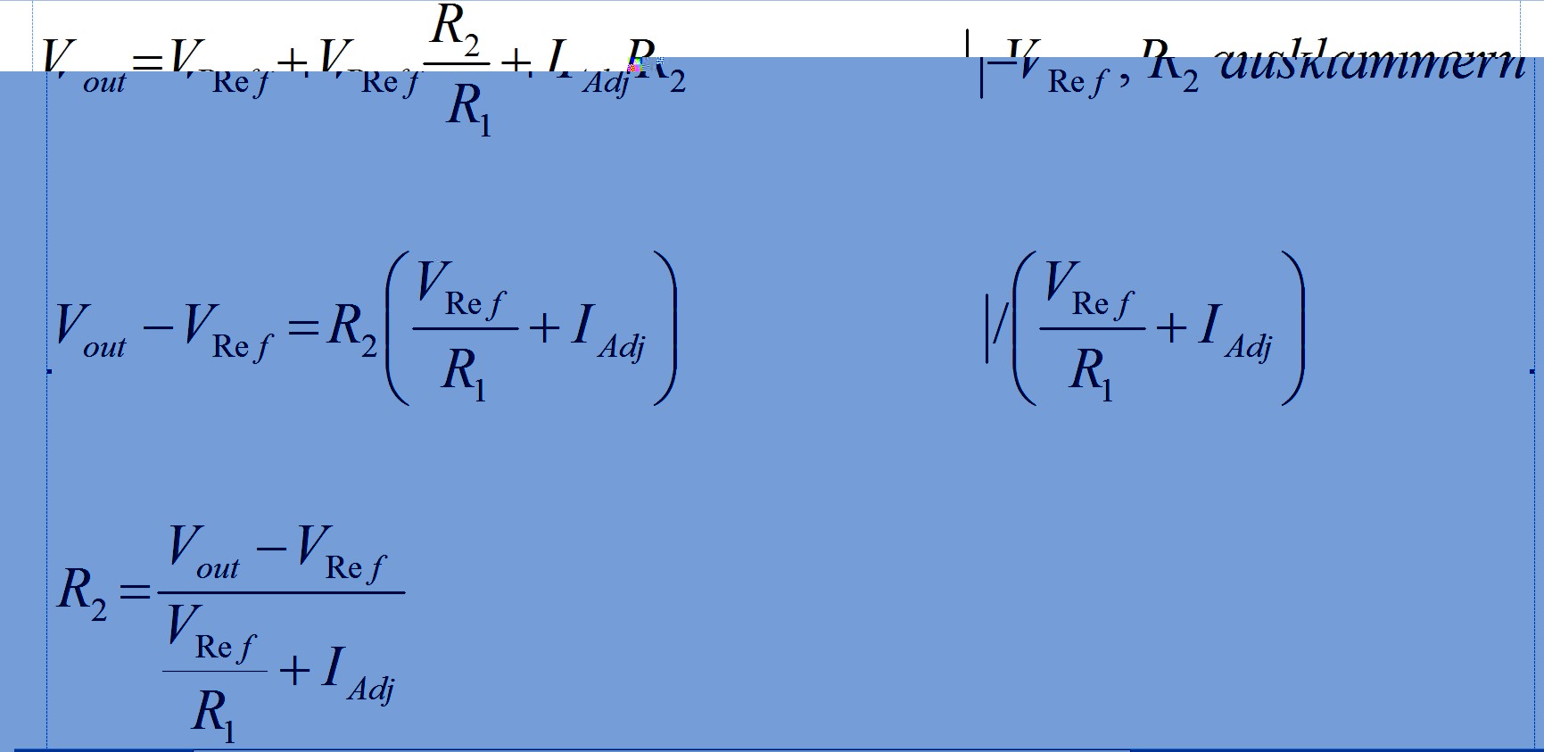Mit R2 = 240 Ohm, gemäß Datenblatt Vref = 1,25 V und IAdj = 0,00005 A ergibt sich die Vereinfachung: