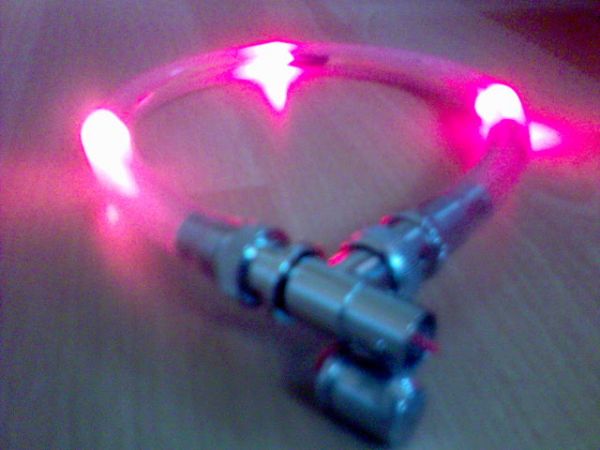 Wir haben mal so etwas ähnliches gebaut, zu einer Zeit als es noch keine mehrfarbige Unterbodenbeleuchtung fürs Auto gab, also haben wir die selbst gebaut. Wir haben damals Kaltlichtkathoden genommen und aus dem Baumarkt durchsichtigen Gartenschlauch, alles verkabelt durchgeschoben und mit Heißkleber abgedichtet.