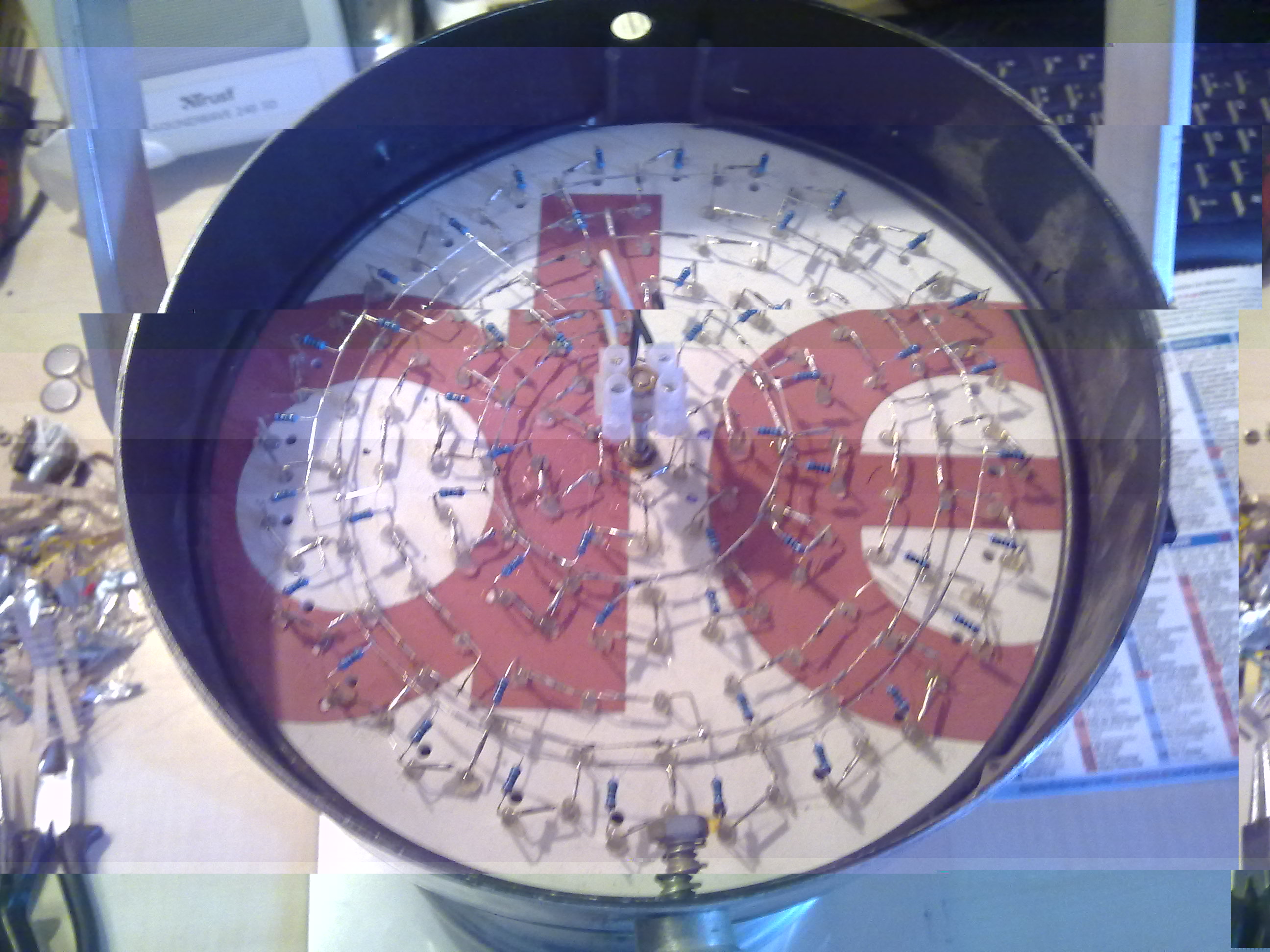 Ich hatte mir gedacht ein PAR64 Leuchtmittel durch LED's zu ersetzen. Habe schon ein Lampe gebaut, 150 LED's (Weiß 3,2V 100mA).