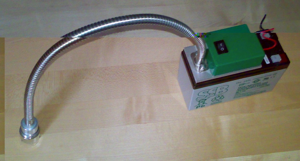 In letzter Zeit habe ich beim Arbeiten in dunkler Umgebung (man denkt ja gar nicht, wieviele Orte es davon im Haus auch mittags im Hochsommer gibt) immer öfter mal eine praktische Arbeitsleuchte vermisst. Bei Taschenlampen braucht man meistens wen der hält, oder aber sie klemmen unzuverlässig irgendwo und stören mehr als sie nützen. Und falls man gerade am Strom arbeitet (und dabei tatsächlich auch mal die Sicherung runter hat), wäre es ja auch ganz nützlich wenn sie netzunabhängig brennt.