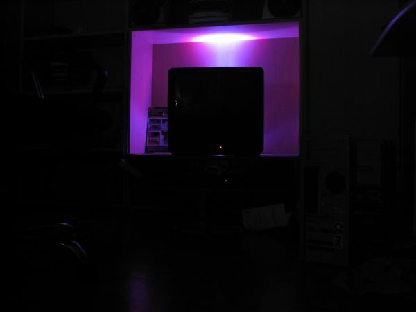 sieht dadurch sehr gemütlich aus. und das zusammenspiel von den blauen und roten LED´s find ich sehr gut, und dadurch auch das ergbnis, shr schön geworden , jetzt iwrd der fernseher gut in den vordergrund gestellt.