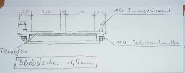 das ganze vielleicht 2,5cm tief und an den rändern runterhum 2cm überstehen lassen, damit es mit der frontblende verbunden werden kann.