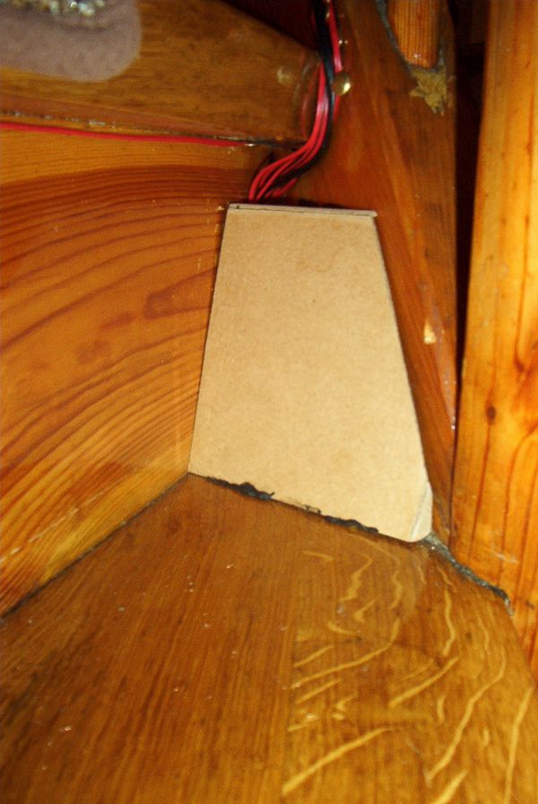 Damit man die Verkabelung nicht sihet, ist hier die extra angefertigte Holz-Abdeckung für die Stufe, die die Kabel versteckt angebracht worden.