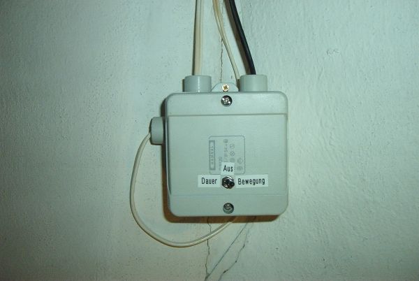Die nach unten geführten Zuleitungen habe ich dann in einer Abzweigdose an die Stromversorgung sowie den Optokoppler und die Elektronik (Aufenthaltsschalter) im Deckel angeschlossen.