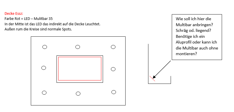 ich hab mir ja vor kurzen ne Menge Mulitbar 35 gekauft der Trockenbauer macht mir gerade die Decke und ich benötige Hilfe von euch wie ich am besten die Leds anbringe um bestes Ergebniss zu erzielen.