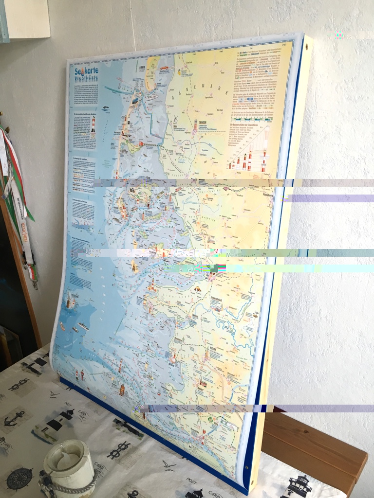 Heute ist meine illuminierte Seekarte mit den Leuchttürmen der Schleswig Holsteinischen Westküste soweit fertig geworden. Viel zu lange habe ich so eine ähnliche Karte an der Nordsee in den Läden hängen sehen. Es werden dafür allerdings Preise zwischen 600 und 800 Euro verlangt.