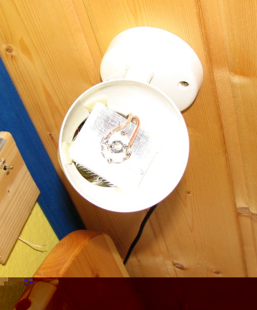 Zunächst habe ich mal die Lampe zerlegt, danach den Sockel der Glühbirne ausgebaut, dass Platz fürs Vorschaltgerät da ist.